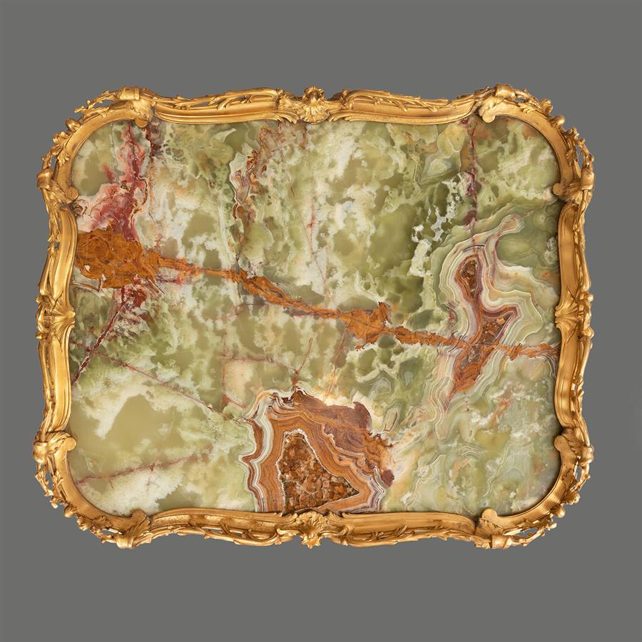 美好年代时期缟玛瑙桌面铜鎏金沙龙桌