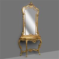 A Louis XV Style Gilt and Carved Wood Console Table with Pier Mirror