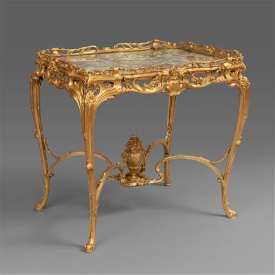 美好年代时期缟玛瑙桌面铜鎏金沙龙桌