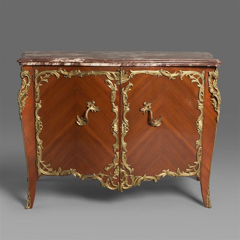 路易十五样式铜鎏金装饰西阿拉黄檀木镶花边柜