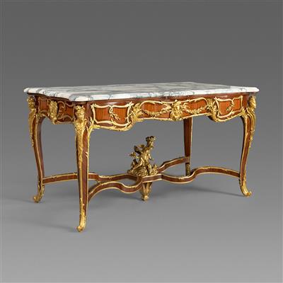 路易十五样式铜鎏金装饰西阿拉黄檀木和郁金香木镶花中央桌