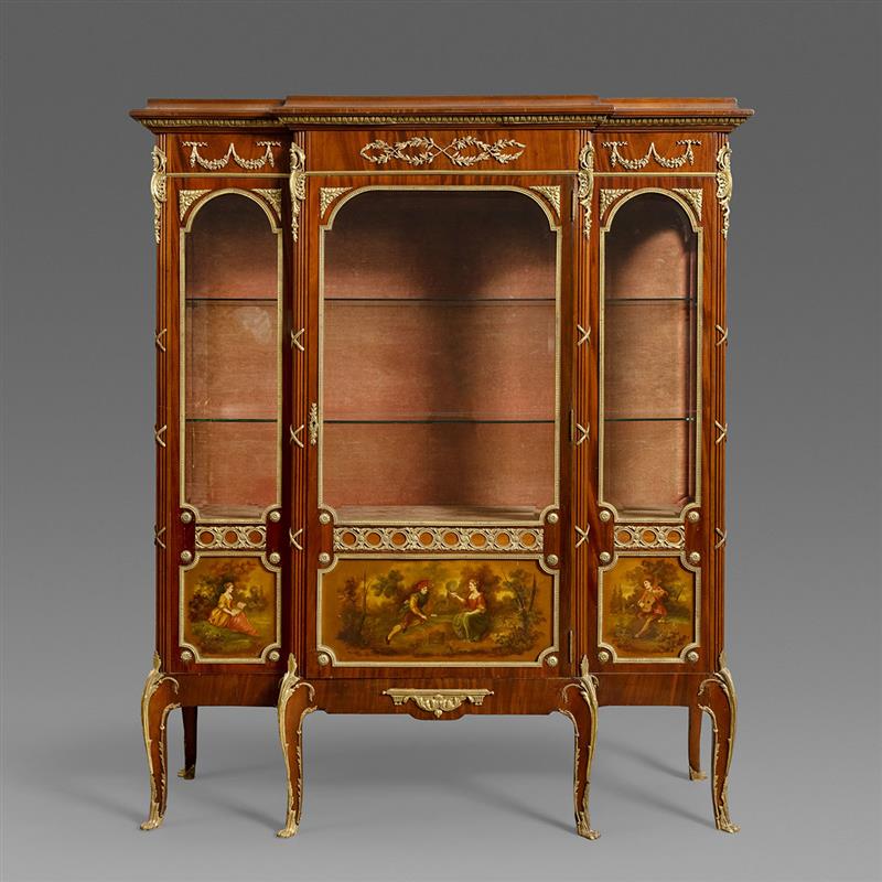 路易十五样式铜鎏金装饰马丁漆画西阿拉黄檀木镶花展示柜