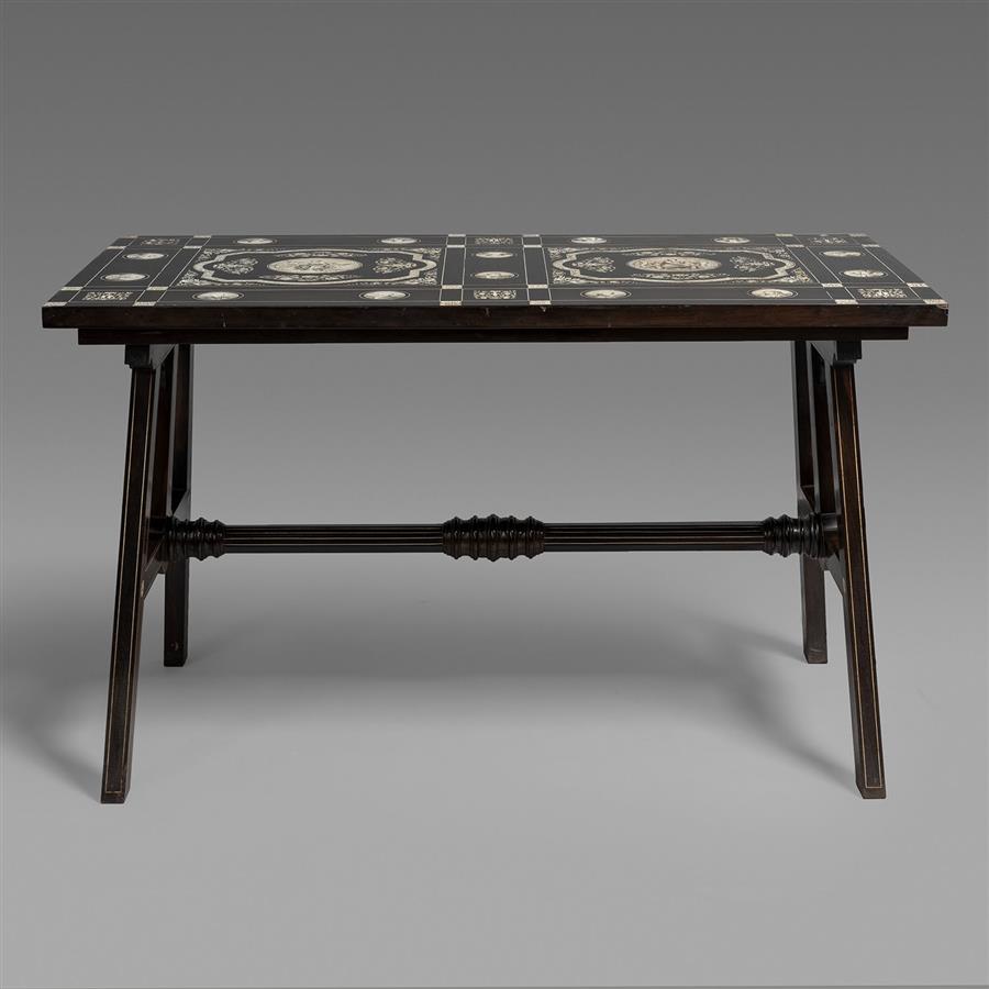 A Neo-Renaissance Style Inlaid Indian Ebony Library Table