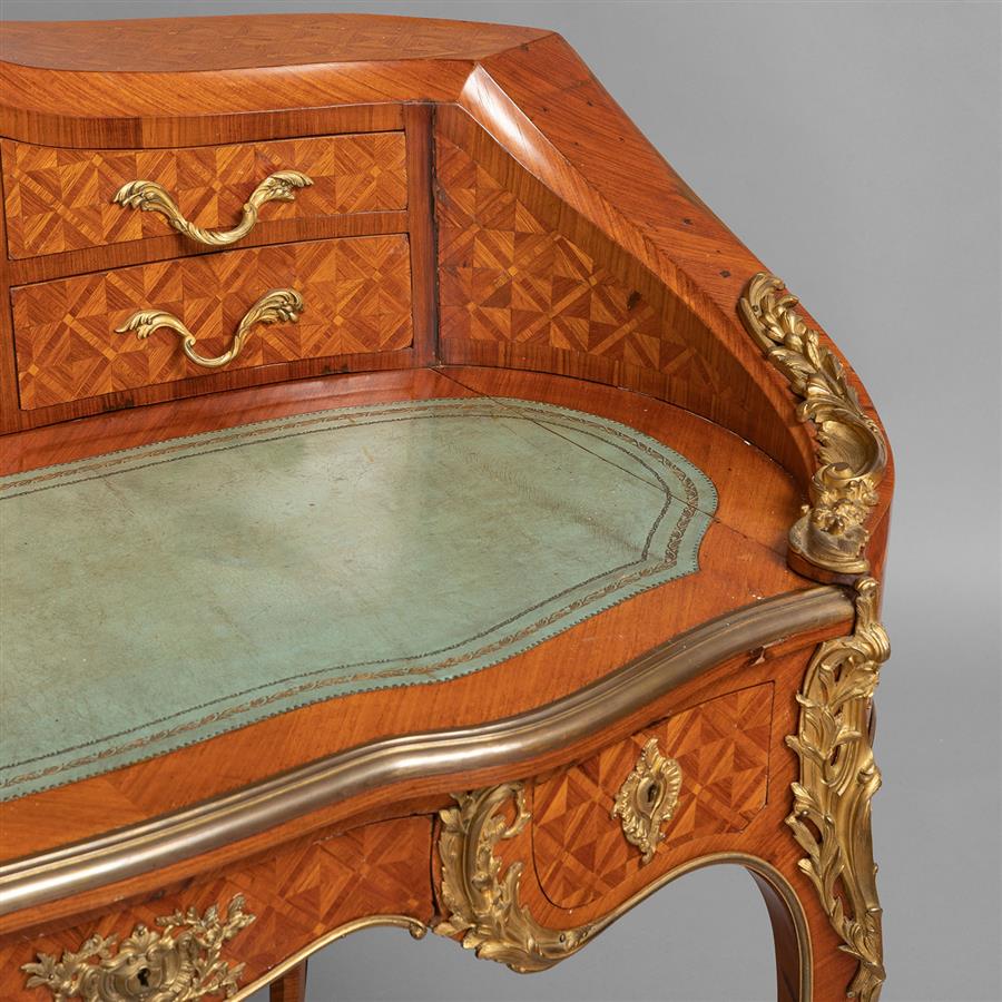 路易十五样式铜鎏金装饰缎木镶花西阿拉黄檀木阶梯写字桌