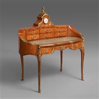 米莱公司(Maison Millet, 1853-1918)19世纪下半叶巴黎重要艺术家具制造商之一,细木工布莱斯·米莱(Blaise Millet, 1829-1906)1853年创立于巴黎雅克-科尔街(Rue Jacques-Coeur)11号,以高品质的路易式细工镶嵌和漆画家具,以及精美的鎏金青铜饰件而广受称赞。1890年代,公司在布莱斯之子西奥多·米莱(Théodore Millet, 1853-1904)带领下逐步发展壮大,成为当时重要的制造商之一,被舆论评论为古典和现代艺术家具界的翘楚;作为19世纪重要的国际展览参展商之一,公司曾获得众多重要展览荣誉和奖章,1889年首次参加巴黎世博会便斩获大会金牌,更在1900年巴黎世博会获得三项荣誉奖、四枚金牌,以及博览会大奖。1902年3月,公司获得凡尔赛授权,复制了18世纪大师让-费迪南德-约瑟夫·施威弗格(Jean-Ferdinand-Joseph Schwerdfeger, 1734-1818)于1787年为玛丽·安托瓦内特(Marie Antoinette, 1755-1793)制作的大型婚礼珠宝柜;同年,公司总部搬迁至博马舍大道(Boulevard Beaumarchais)23号芒萨尔·德萨贡公馆(Hôtel Mansart de Sagonne);1904年,公司参加美国圣路易斯世博会之后,在纽约曼哈顿第五大道(Fifth Avenue)469号建立北美代表处;1905年,公司在巴黎家具工业沙龙(Salon des Industries du Mobilier)展出了新艺术元素的鎏金青铜中央桌,以现代风格向世界展示了他们作为创作者的才华,奠定了美好年代(Bèlle Époque)风格主要创造者之一的重要地位。1906年,公司因西奥多去世后无人继承而关闭工厂,并举行了库存拍卖,至1918年停止一切商业活动。