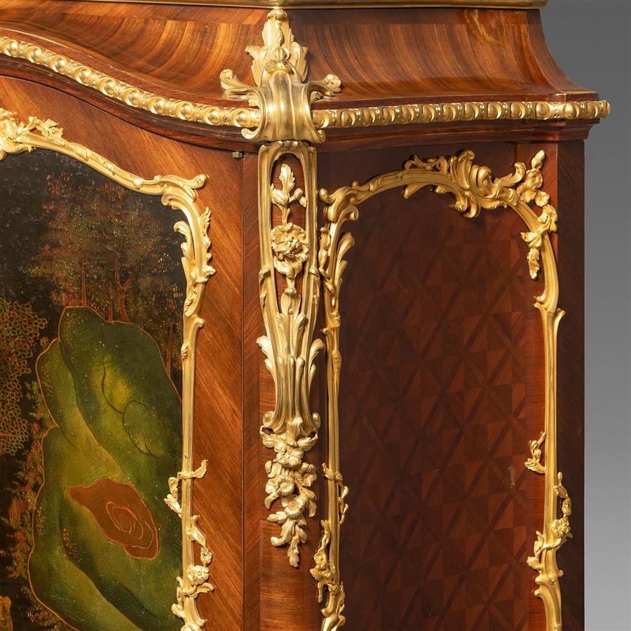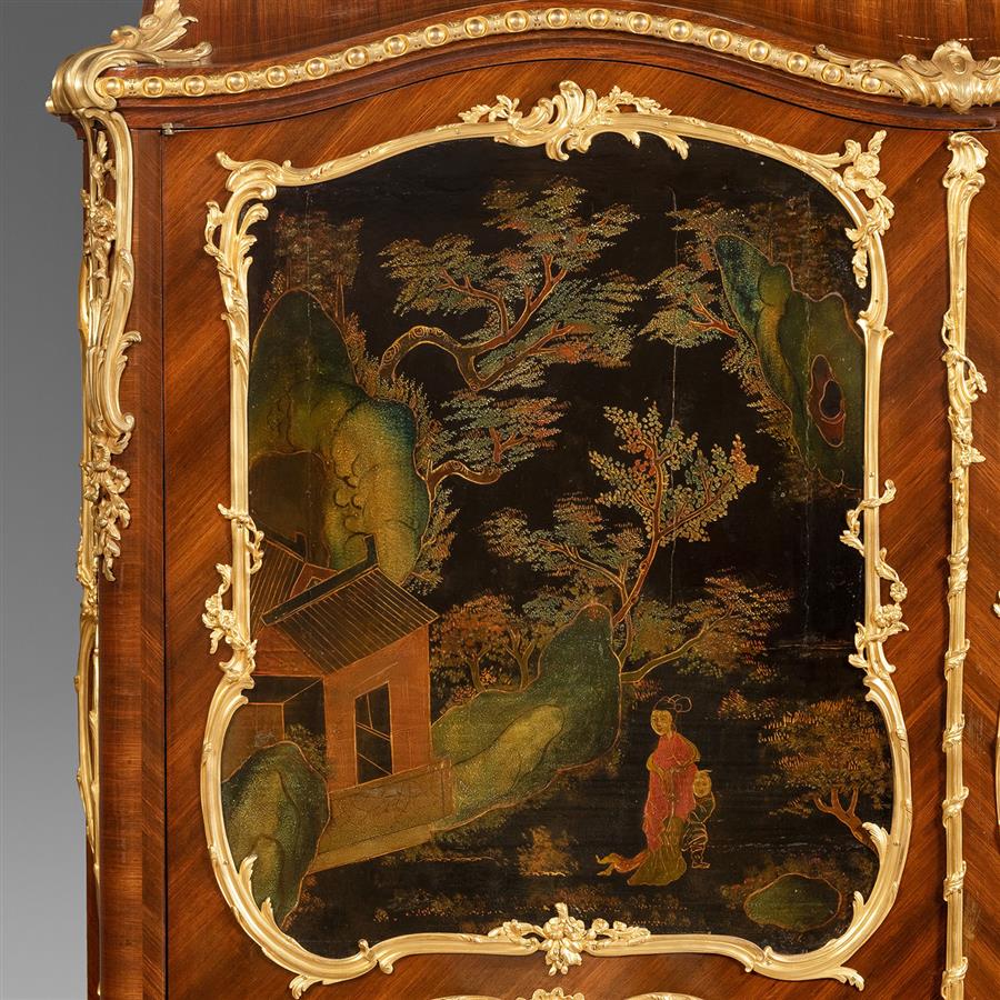 路易十五样式铜鎏金和款彩漆画装饰西阿拉黄檀木镶花桃花心木衣柜