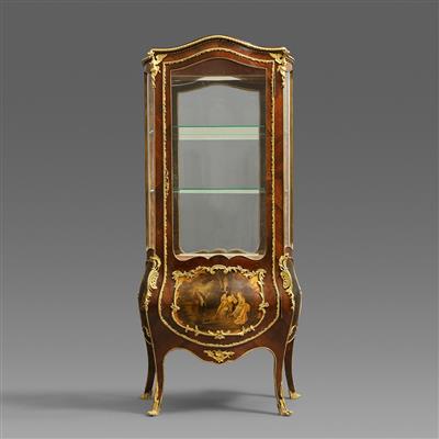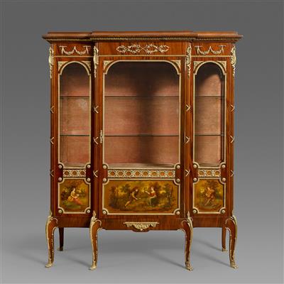 路易十五样式铜鎏金装饰马丁漆画西阿拉黄檀木镶花展示柜