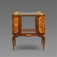 路易十五样式铜鎏金装饰缎木和果木细工镶嵌西阿拉黄檀木酒具展示桌