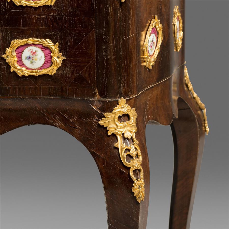 路易十五样式铜鎏金和巴黎瓷板装饰西阿拉黄檀木小橱桌