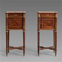一对路易十六样式铜鎏金装饰桃花心木床头柜