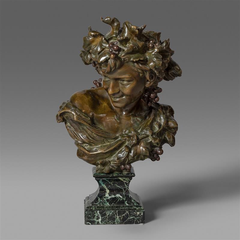 头戴葡萄花环的微笑少年