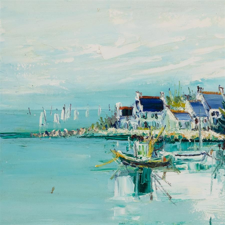 约兰达·阿迪松(Yolande Ardissone,b. 1927)法国女画家,1927年6月6日生于法国诺曼底地区比埃伊(Bueil)。阿迪松自幼受到保罗·高更(Paul Gauguin,1848-1903)、皮埃尔-奥古斯特·雷诺阿(Pierre-Auguste Renoir,1841-1919)和文森特·梵高(Vincent van Gogh,1853-1890)的影响开始学习绘画;1944年,她离开家乡诺曼底向往巴黎进入国立高等应用美术学院,2年后转入国立高等美术学院继续学业。1940年代后期,阿迪松相继前往意大利,西班牙,阿尔及利亚,荷兰,印度尼西亚,埃及,海地,中国,泰国和俄罗斯等多地采风,并将来自世界各地的灵感融入其作品之中。1949年,她的作品在法兰西美术沙龙展出并获得荣誉奖;1953年,她进入秋季沙龙委员会;1957年,美国芬德利画廊与她签订独家代理合同,同时将她的作品引入北美地区;自此至21世纪,阿迪松的作品定期在美国,法国,意大利等多地定期举办展览。阿迪松在艺术界获得了相当高的声誉,在她的职业生涯中赢得多次重要美术奖项,其中包括巴黎绿盾奖、美术学院奖、枫丹白露城市奖等,并获得巴黎荣誉骑士勋章。2000年,阿迪松被收录至贝内齐艺术家名录(Bénézit: Dictionnaire des peintres, sculpteurs, dessinateurs et graveurs)中。普罗旺斯、巴黎以及法国各地的乡村都是她钟爱表现的题材,当然法国西部的布列塔尼地区更是她的最爱。自然而愉悦的活力从她那蓝绿的淡雅色调中跳跃欲出,宁静的海岸、安逸的乡村和静谧的自然在她笔下呈现出一幅幅诗意篇章。如今,阿迪松的作品不但是各大拍卖市场的宠儿,也被众多公私机构所收藏,如法国和巴黎市政府、波尔多力士金酒庄、海洋博物馆,圣穆尔博物馆,圣塞普林博物馆和圣丹尼博物馆等。