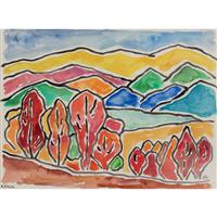 Watercolor with Pen and Ink on Paper Laid on Cardboard