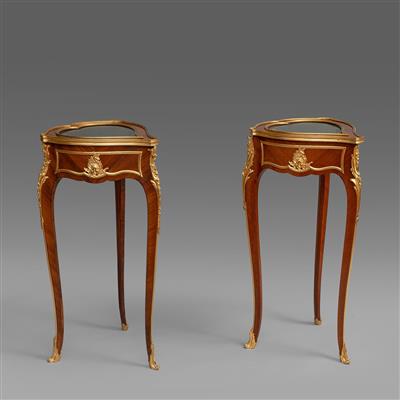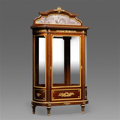路易十六样式铜鎏金装饰马丁漆画桃花心木双体展示柜