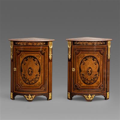 一对路易·菲利普时期铜鎏金装饰乌木色边柜