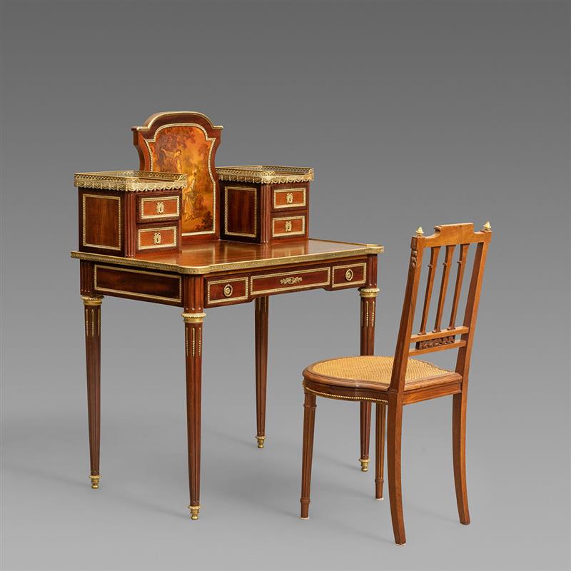 路易十六样式铜鎏金装饰马丁漆画桃花心木叠橱式淑女写字桌