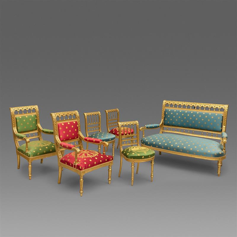 热尔韦-马克西米利安-欧仁·杜兰拿破仑三世时期铜鎏金装饰半宝石镶嵌乌木色边柜