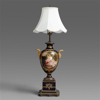维也纳样式彩绘钴蓝瓷瓶台灯