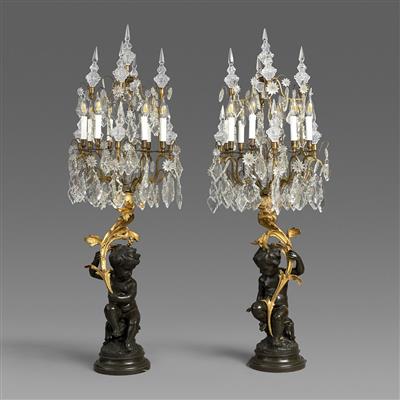 一对路易十五样式铜鎏金双枝壁突式烛台